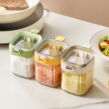 キッチンソルト & ペッパーシェーカーガラス調味料収納瓶計量スプーン内蔵密封スパイス容器ボトル