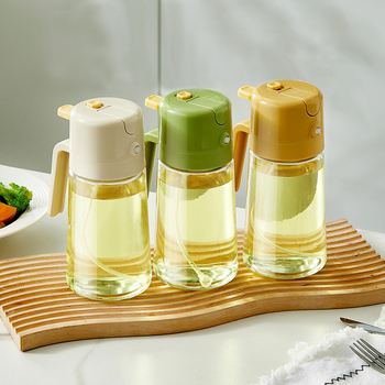 家庭用オイルコントロールスプレーポット500ml 2 in 1ガラスオイルディスペンサーボトル調理用エアフライヤーサラダBBQオイルと酢スプレー